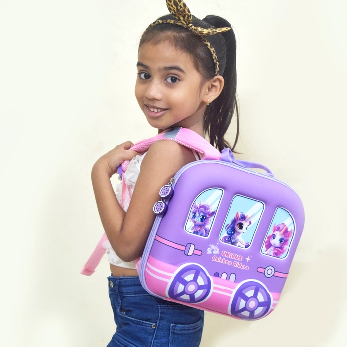 Adorable 3D Bus Design: Eye-catching 3D unicorn cartoon character graphics with a cute bus design make this backpack a favorite among kids and a standout in school.