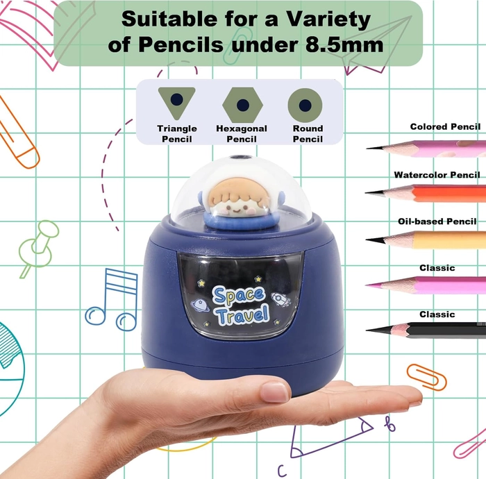 Electric Pencil Sharpener Cute Portable Astro Design for Students and Classroom, Blue