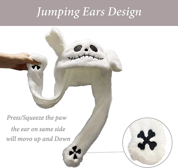 Jumping Ear Design GHOST Hat: The Cute Ghost Hat’s Ears Popping Up When Pressing Its Paws with LED Glowing. More Than a Winter Hat Keeping Warm on Cold Days as a Basic Long Ear Hat, It is Also Designed for Fun. Made of Soft, Smooth, and Comfy Plush Materials, the Whole Hat Looks Like a Fluffy and Plushy Ghost. Perfect Gift for Kids’ Super Cute Gift, Make the Ghost Ears Dancing Together. Size (Approx) 50 X 30cm/19.66 X 11.8 Inches(Length X Width). Fit Type: Loose / Free Size. Suitable for 8 Years+